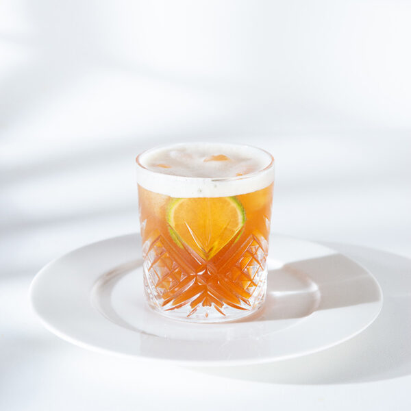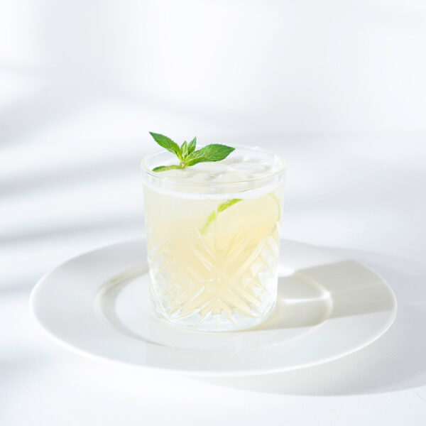 نوشیدنی سرد گازدار بر پایهی شلیل، عسل، لیمو و نعنا.