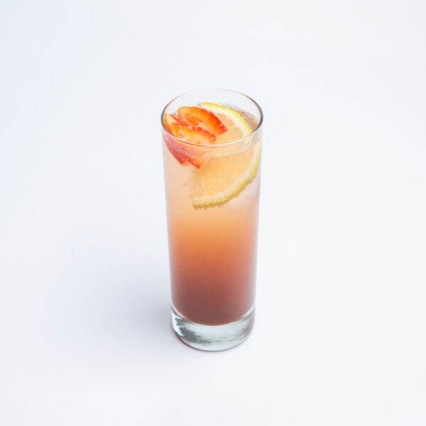 نوشیدنی سرد گازدار بر پایه لیمو ترش و توت فرنگی.