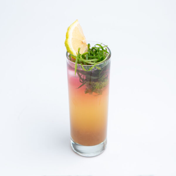 نوشیدنی سرد گازدار بر پایهی شلیل، عسل، لیمو و نعنا.